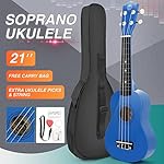 ♬. Everything you need for a Soprano Ukulele Kit is here: 1*21 Inch Ukulele, 1*Gig Bag, 1*Clip-on Digital Tuner, 1*Strap, 1*Spare Nylon Strings, 2*Finger Pick, 1*Fingerboard Sticker and 1*Cleaning Cloth.